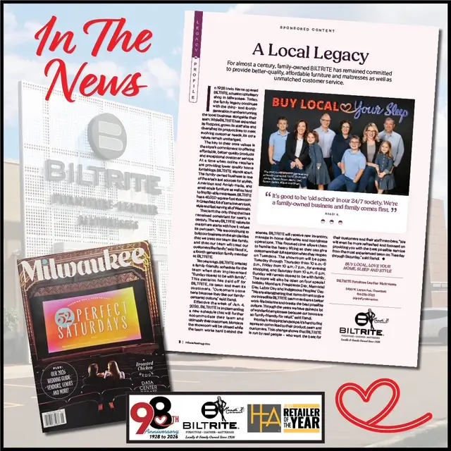 BILTRITE is proud to be voted Best Furniture Store and Best Mattress Store for the 9th Yea...