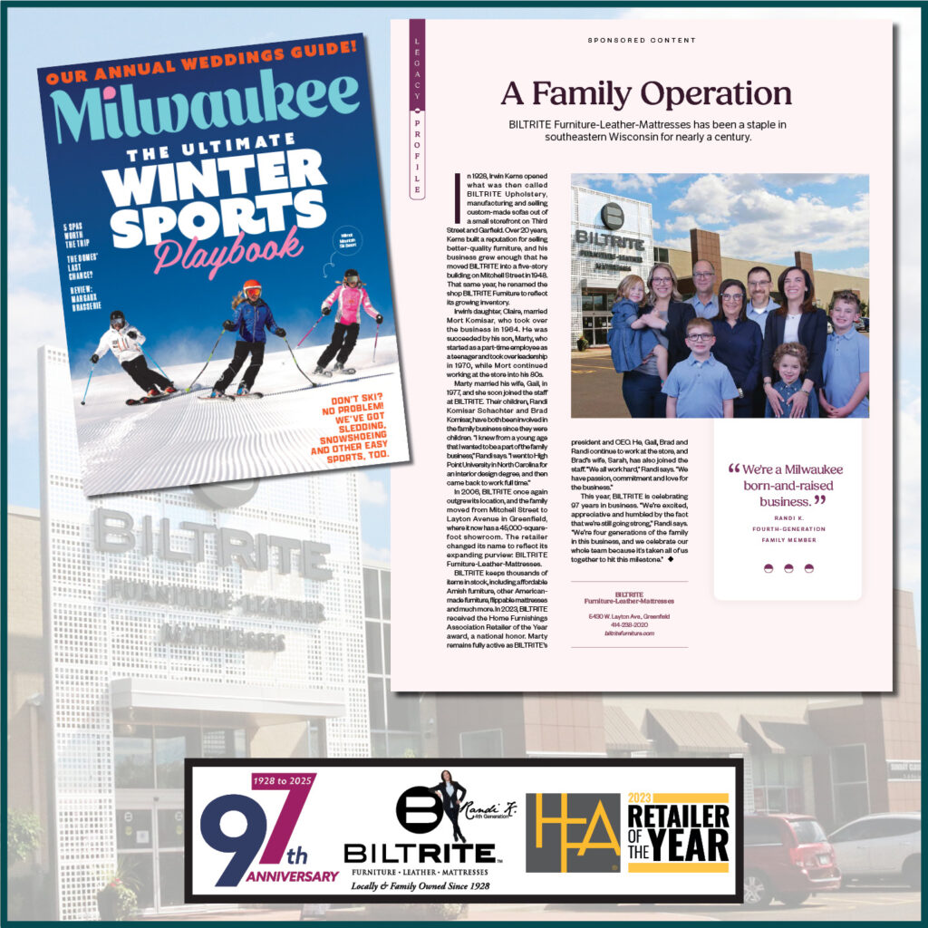 Four generations of Komisars have made BILTRITE Furniture-Leather-Mattresses one of the mo...