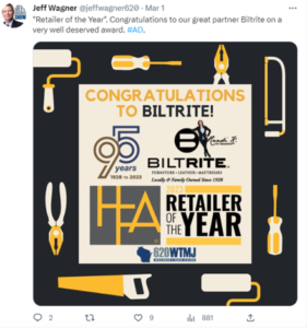 We are thrilled to announce that BILTRITE has received the Home Furnishings Association’s (HFA) RETAILER OF THE YEAR AWARD FOR 2023! We are honored to be recognized as a leader in the home furnishings industry.