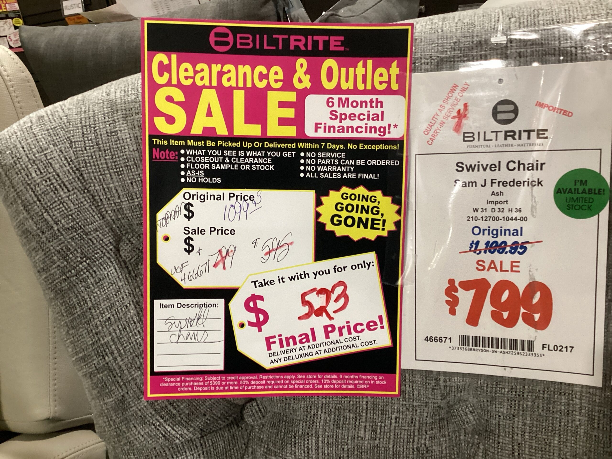 Thank you for contacting BILTRITE! We are a Brick-and-Mortar Furniture and Mattress Retailer who ONLY sells and services Wisconsin and Northern Illinois. We will CALL you back within 48 hours if you are within our region. Thank you! #BUYLOCAL