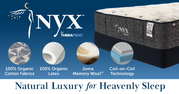 NYX by Therapedic – 1-Sided Hybrid 13.5″ Luxury Plush, 100% Organic Cotton Fabric, PurLoft Wool, 1” Joma Memory Wool, 2” Plush 100% Organic Latex, 2.4” Softech Micro-Coil, 5-Zoned Luxury Encased Coil with Steel Coil Edge Support, Firm Insulator Base and Handles Built to Last – Heavy Duty Mattress Holds Up To 600 Pounds. Adjustable Base Friendly! Pricing includes your choice of a 9 inch high-profile or 5.25 inch low-profile Heavy Duty Amish Made Foundation & FREE Mattress Protector – or – Heavy Duty Bed Frame.